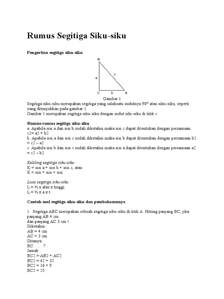 Rumus Segitiga Luas Keliling Dan Contoh Soal Pembahasannya from saintif.com Pada pelajaran kali ini kita akan membahas mengenai luas segitiga. Pada dasarnya menghitung keliling segitiga ataupun luas segitiga ini sudah pernah diajarkan pada bangku sekolah. Di dalam bahasa inggris disebut dengan right triangle. Menghitung luas dan keliling segitiga. Untuk mencari luas dan keliling segitiga sama sisi yang bersisi a dapat digunakan rumus sebagai berikut Sisi di depan sudut 90o disebut hipotenusa atau sisi miring. Segitiga siku siku ialah merupakan sebuah segitiga yang salah satu dari tiga sudutnya mempunyai sudut 90o. Cari dan hitunglah luas segitiga siku.